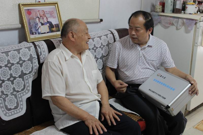 2015年7月25日,泰安邁迪醫(yī)療電子有限公司,攜帶家庭遠(yuǎn)程醫(yī)療健康監(jiān)測(cè)設(shè)備,來(lái)到肥城市抗美援朝老英雄張成功老人家中,贈(zèng)送健康監(jiān)護(hù)儀器。對(duì)抗戰(zhàn)老英雄進(jìn)行慰問(wèn)??偨?jīng)理范世忠親自給老人查體,手把手的教老人使用本公司研發(fā)生產(chǎn)的高科技健康監(jiān)護(hù)儀。當(dāng)老人看到查體結(jié)果一切正常,非常高興。特別是當(dāng)老人知道,自己的檢測(cè)結(jié)果,能實(shí)時(shí)的發(fā)送到自己和親屬的手機(jī)上,而且還能傳到醫(yī)院,由醫(yī)生遠(yuǎn)程診斷結(jié)果時(shí),異常興奮,開(kāi)朗的老人,大呼現(xiàn)代高科技的奇妙。