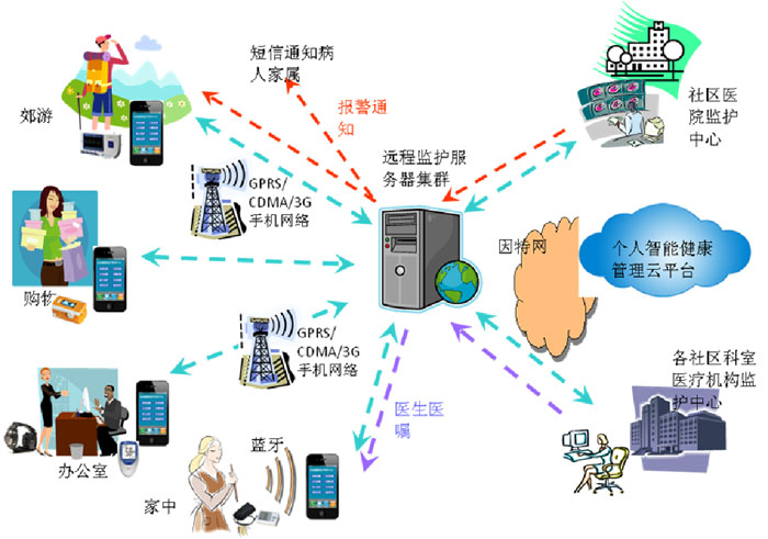 隨著移動(dòng)通信技術(shù)和互聯(lián)網(wǎng)技術(shù)的發(fā)展,我們已進(jìn)入移動(dòng)互聯(lián)網(wǎng)時(shí)代,傳統(tǒng)行業(yè)及其運(yùn)營管理模式都面臨著極大挑戰(zhàn),都要進(jìn)行改革和創(chuàng)新,否則就面臨被顛覆的危險(xiǎn)。社區(qū)醫(yī)院遠(yuǎn)程監(jiān)護(hù)及健康管理系統(tǒng),改變了醫(yī)院醫(yī)療技術(shù)和服務(wù),居家健康管理,疾病預(yù)防的模式,實(shí)現(xiàn)社區(qū)醫(yī)院全面身體各項(xiàng)生命特征監(jiān)護(hù)互聯(lián),并擴(kuò)展到院外進(jìn)入家庭,讓監(jiān)護(hù)信息共享互補(bǔ),讓病人利用無處不在的手機(jī)網(wǎng)絡(luò),實(shí)現(xiàn)遠(yuǎn)程實(shí)時(shí)健康監(jiān)護(hù),從而實(shí)現(xiàn)及早預(yù)防及早治療的全新醫(yī)療模式讓病人在任何時(shí)間地點(diǎn)都能享受醫(yī)院的醫(yī)療技術(shù)和服務(wù)。